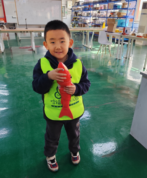 在工作人员的带领下,小朋友们依次参观了元宇宙教学基地、电子电工实训基地、智能雕铣实训基地、工业机器人实训基地和无人机实训基地。尽管许多设备和基地对孩子们来说充满“神秘感”,但通过生动形象的比喻和实物展示,老师们将复杂的原理转化为童趣语言:“这个机器就像会画画的笔,能在金属上雕刻出漂亮的图案”“这台‘打印机’不是打字,而是把塑料变成小汽车!”,在中心会议室还给小朋友播放了机器人团队的精彩比赛视频,展示了国家级工程训练示范中心的风采。