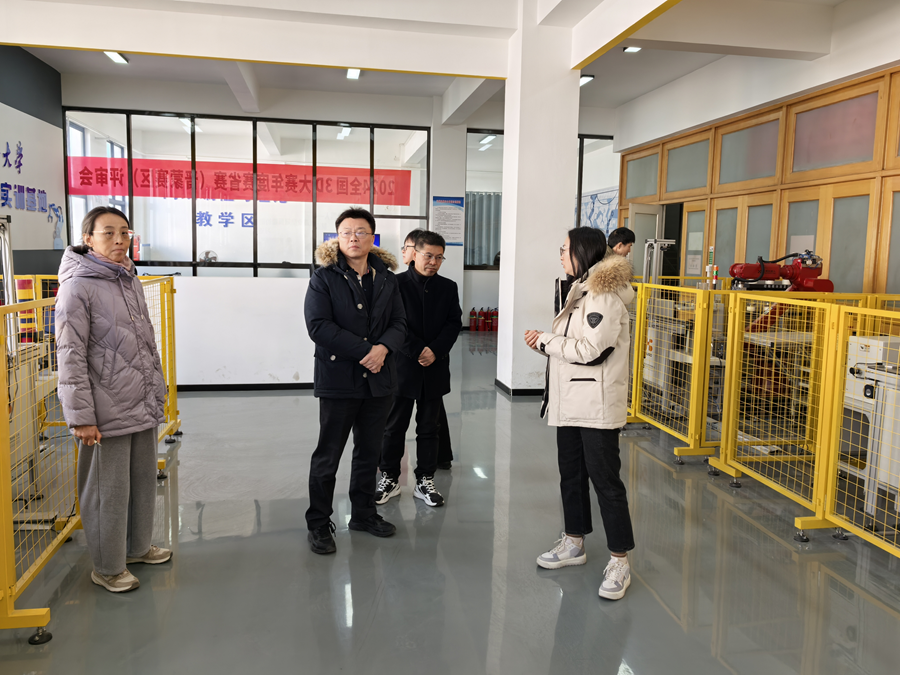 郭菲书记等陪同陈伟院长一行参观了中心先进制造实训基地、云制造实训基地、元宇宙中心、数控雕铣实训基地、工业机器人实训基地、工业协作机器人实训基地、切削一体化实训基地、安全教育实训基地等,还参观了机器人基地,并现场介绍了实践教学及设备运行情况以及双创活动开展情况。
